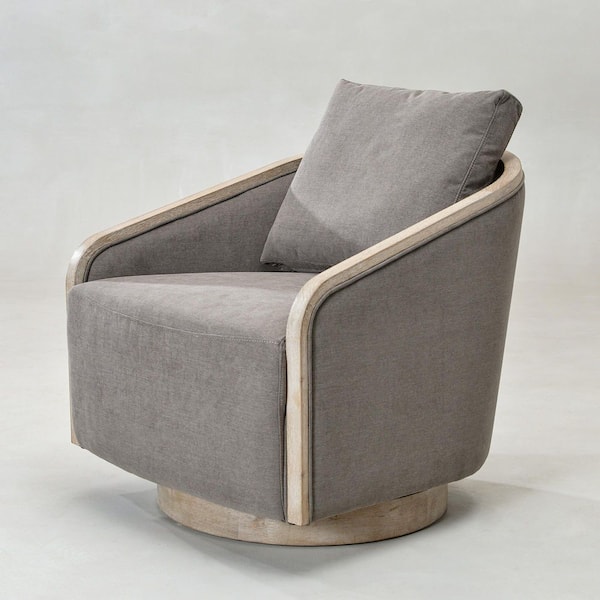 Slate Gray Modern Polyester Upholstered Swivel Barrel Armchair with Down Filled Pillow Back