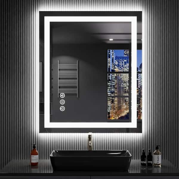 24 in. W x 32 in. H Rectangular Frameless LED Frontlet,RGB Backlit Anti-Fog Tempered Glass Wall Bathroom Vanity Mirror