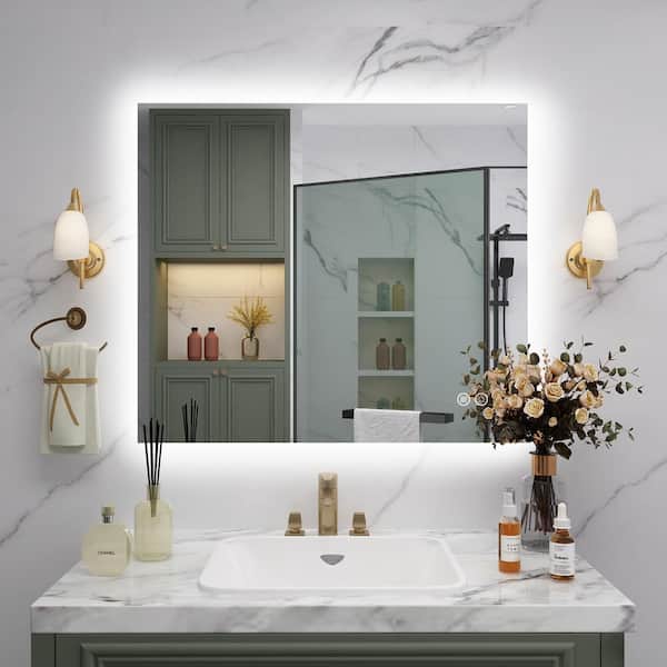 32 in. W x 36 in. H Rectangular Frameless Super Bright Backlited LED Anti-Fog Tempered Glass Wall Bathroom Vanity Mirror