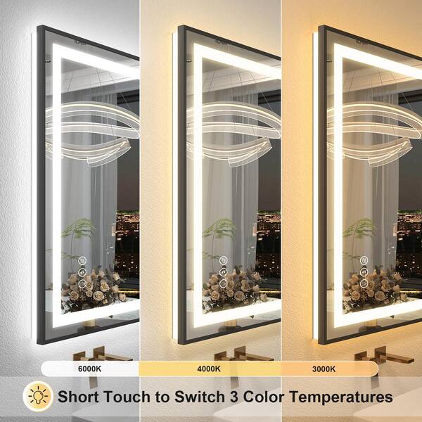 48 in. W x 40 in. H Rectangular Framed Front and Back LED Lighted Anti-Fog Wall Bathroom Vanity Mirror in Tempered Glass