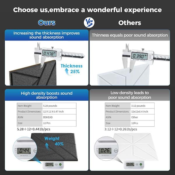 0. 47in T x 1ft x 1ft Black Polyester Sound Absorbing Panel 8-Pack