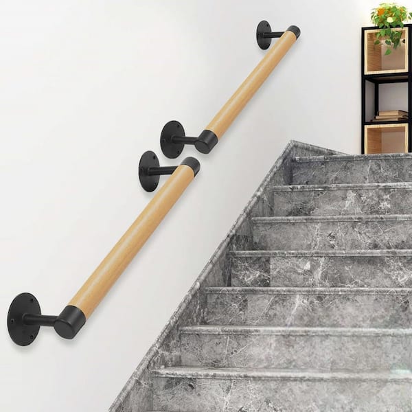 1.5 ft. Natural Wood Handrail, Wall-Mounted Safety Grab Bar for Indoor and Outdoor Stairs, Brown