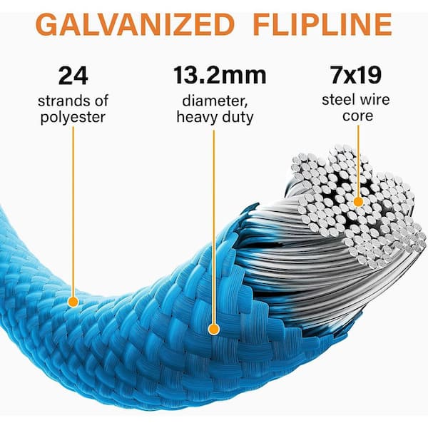 • 10 ft. steel wire core flipline with 22.6kN breaking strength