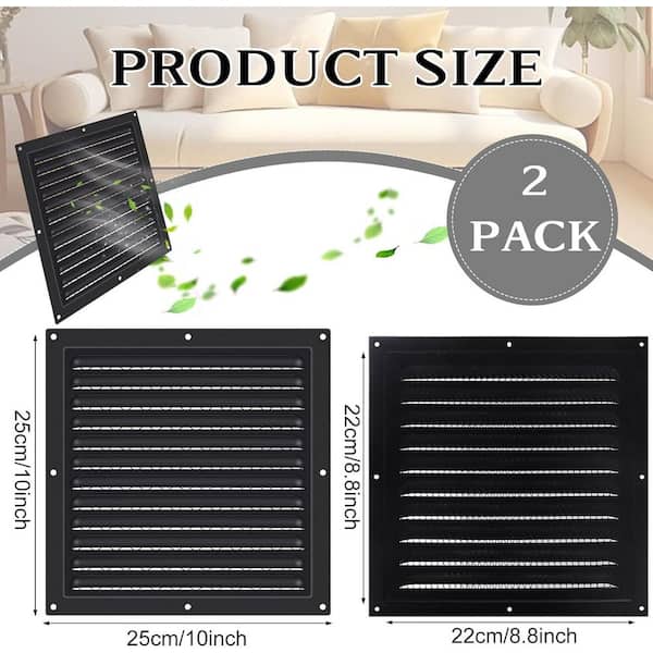 10 x 10 Gable Vents Black Aluminum Durable Outdoor House Loft Ceiling Exterior Grille w Screened Metal Shed Vents 2 Pack