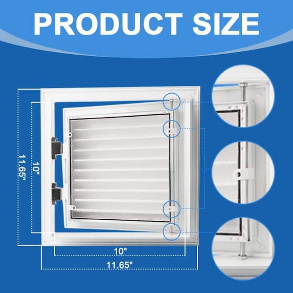 11.65 x 11.65 in. Square White Aluminum Alloy Access Panel for Drywall with Push-Button Switch and Ventilation