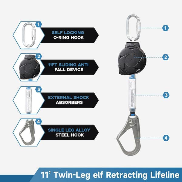 11 ft. Self Retractable Lifeline Fall Protection Safety Lanyard with Big Hook Corrosion Resistant for Construction