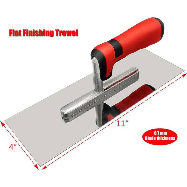 11 x 4 Flat Finishing Trowel with Plastic Handle and 14 x 4 Pool Trowel with Plastic Handle for Masonry Construction