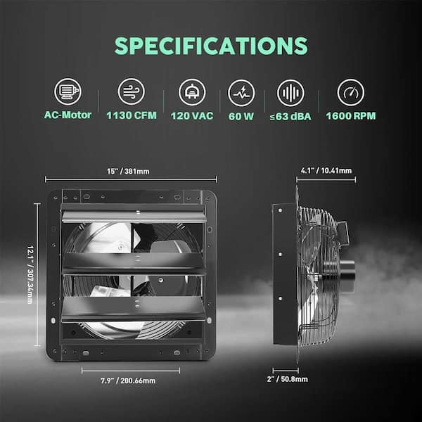 1130CFM 12 in. Aluminum Electric Powered Shutter Exhaust Fan with Speed Controller, Automatic Shutter, High Speed, Black