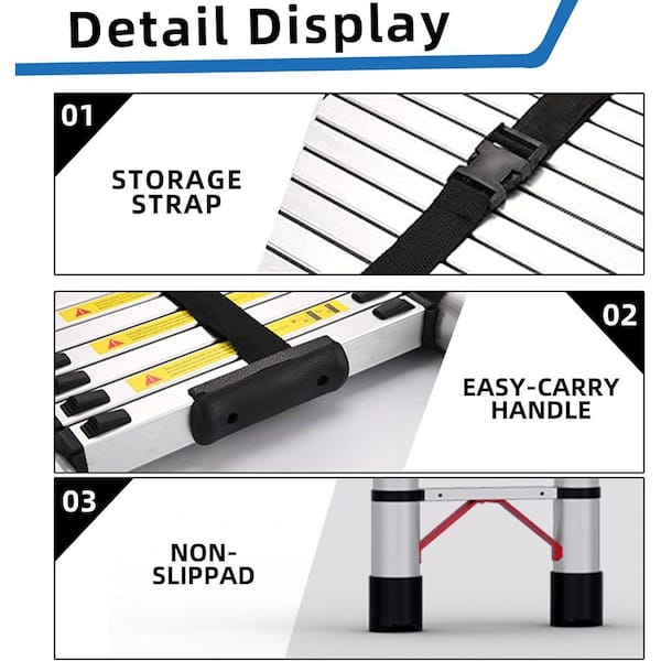12.5ft Aluminum Telescoping Ladder with 330lbs Capacity for Home and Outdoor Use