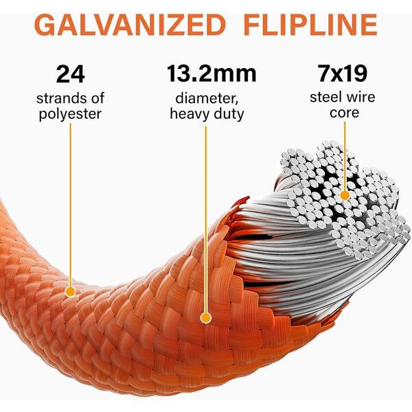 • 1/2 galvanized steel wire core, 5000lbs. maximum strength