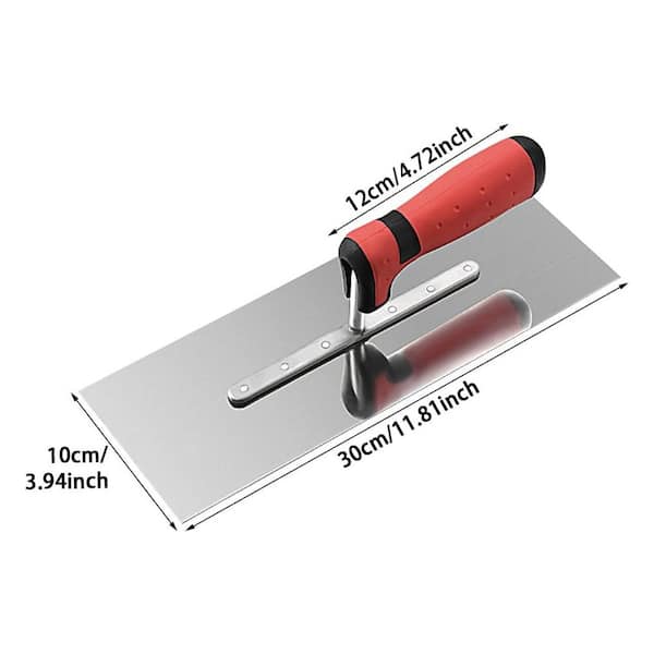 12 in. x 4 in. Stainless Steel Flat Finishing Trowel with Soft Rubber Handle, Drywall Tile Masonry Construction Tool