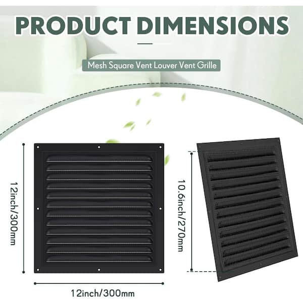 12 x 12 Square Black Aluminum Mesh Gable Wall Vent with Screen for Attic Garage Shed Ventilation 2 Pcs