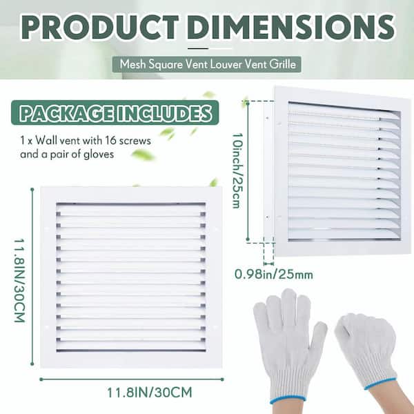 12 x 12 Square White Aluminum Paintable Gable Vent with Screen for Attics and Exterior Walls 4 Pack