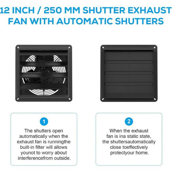 1226 CFM 12 in. Wall Mount Shutter Exhaust Fan with Speed Controller, Black
