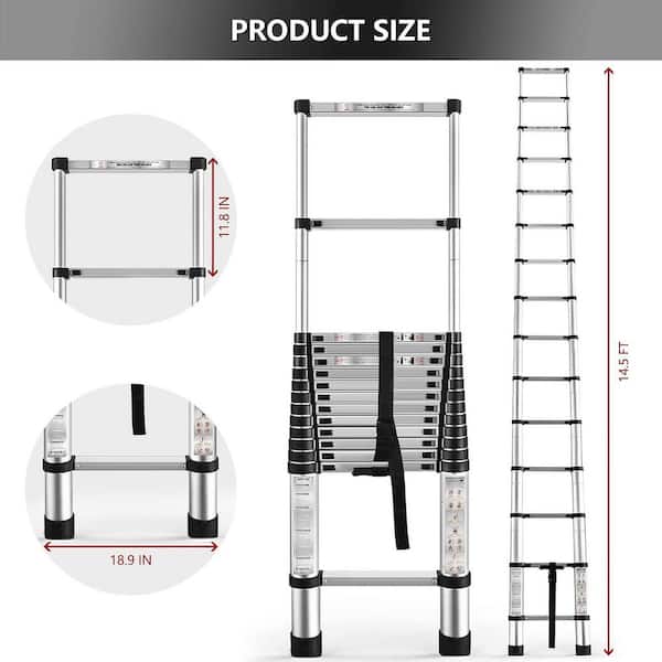 14.5ft Aluminum Telescopic Ladder with Retractable Design and Non-Slip Steps