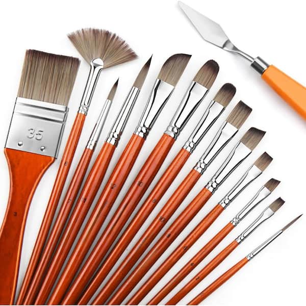 14-Pcs Acrylic Paint Brushes Set with Palette Knife - Professional Synthetic Bristles for Oil and Acrylic Painting