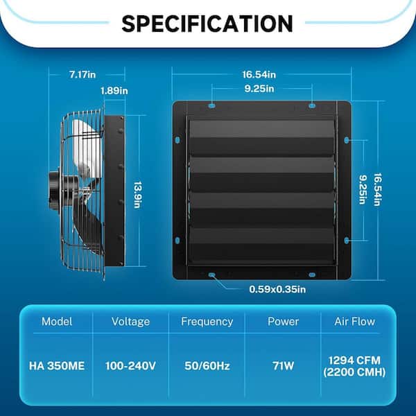 14 in. Wall Mount Attic Fan with Temperature Humidity Controller, 10-Speed Adjustable, 1294 CFM
