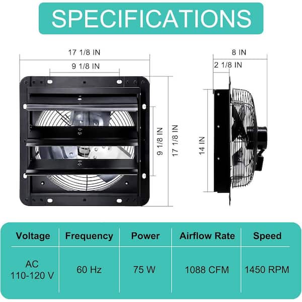• 1088 CFM airflow with 1450 RPM for efficient ventilation