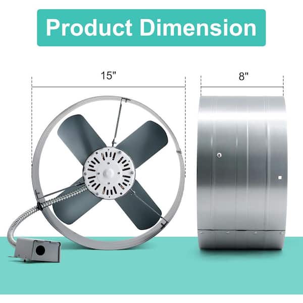 15 in. Gable Mount Power Attic Exhaust Fan with Adjustable Thermostat 1300 CFM 1075 RPM 3.4 Amp High Performance