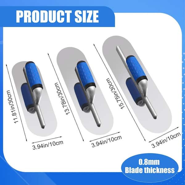 16 x 4 14 x 4 12 x 4 Stainless Steel Flat Blade Concrete Finishing Trowel Set with Ergonomic Handle for Masonry Drywall