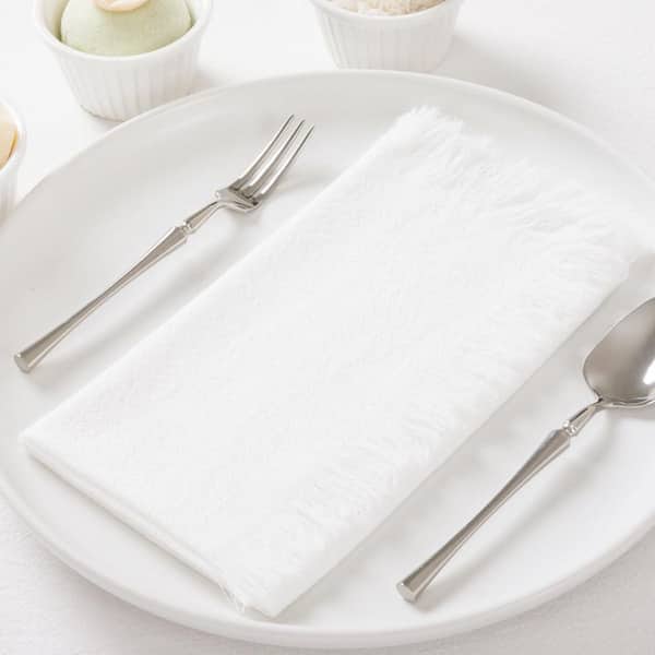 17 x 17 in. Ivory White Cotton Linen Napkins with Fringe White Cloth Napkins (Set of 6)