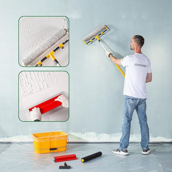 18 in. Drywall Compound Roller with Skimming Blade and Paint Roller Frame with Extension Handle Pole 10-Pack