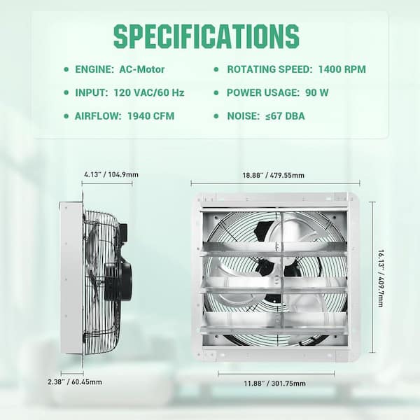 1940-CFM Silver Gable Mount Exhaust Fan with Adjustable Speed Controller and Automatic Shutter for Ventilation