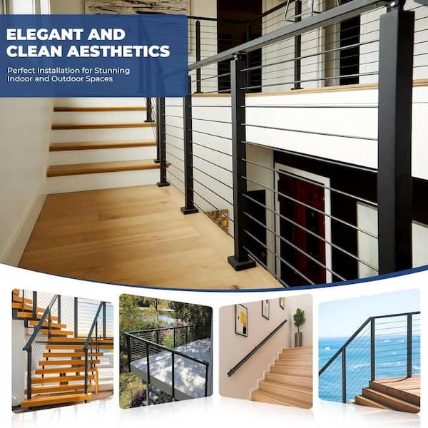 2.36 in. H x 96 in. W Black Aluminum Rectangular Handrail, Coastal Projects, DIY, Stair Railing Kit, 8 Nylon End Caps