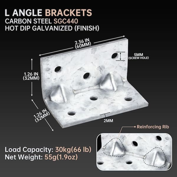 2. 36x1. 26x1. 26in 14-Gauge Steel Nail Stop Nail Plate 20-Pack Anti-Rust Corner Brace L Brackets