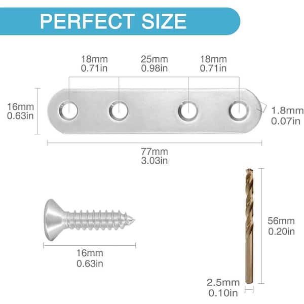 2.99 x 0.63 1.8-Guage Stainless Steel Bracket Nail Plate 14-Pack with 56 Screws for Wood Furniture