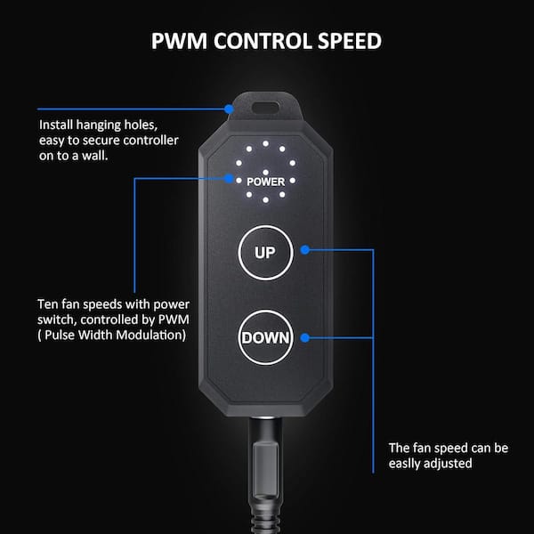 • 10-speed controller allows precise control of the fan speed.