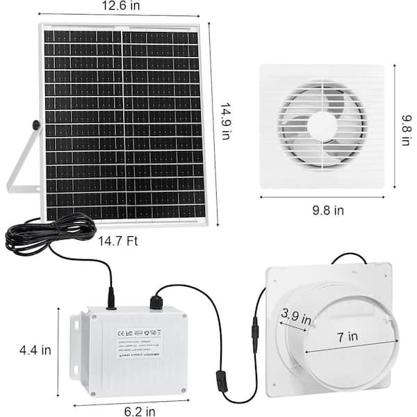 22W Solar Powered Fan for Greenhouse and Chicken Coop, 9.8 in. Exhaust/Intake, Waterproof, Low Noise