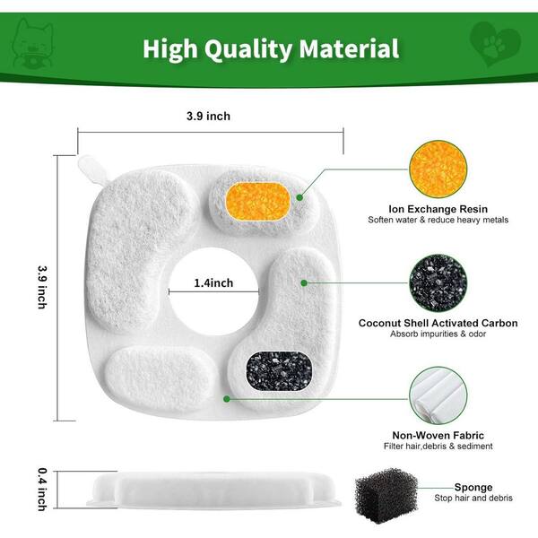 24 Pcs Non-Woven Fabric Activated Cat Water Fountain Replacement Filters, 12 Pack Filters and 12-Pack Pre-Filter Sponges