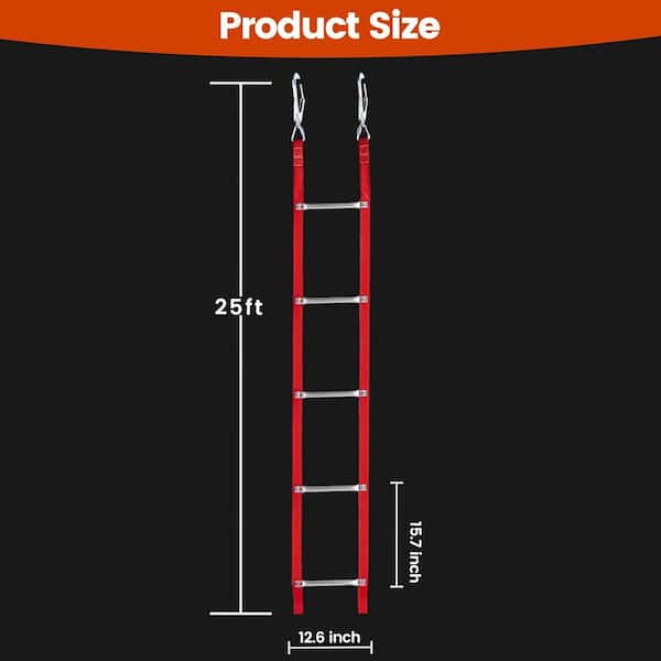 25 ft. 3-Story Fire Escape Ladder Lightweight with Widen Feet Reusable Anti-Slip Design for Emergencies
