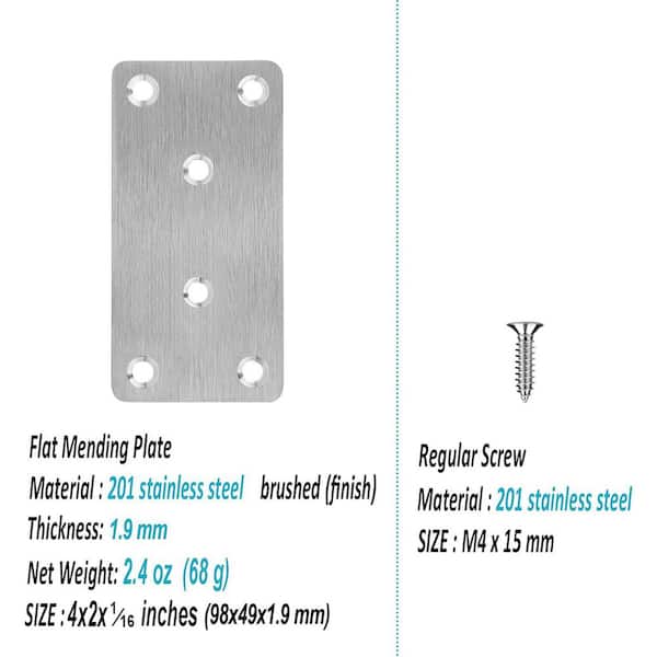 3.86 in. x 2 in. Stainless Steel Straight Brace Flat Mending Plate, 1.9 mm Thickness Fixing Bracket Connector, 10-Pack
