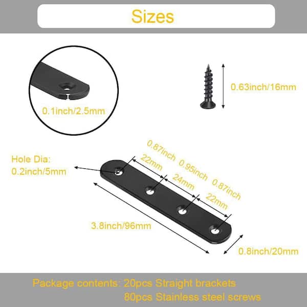 3. 8x0. 8 304-Stainless Steel Flat Mending Plates Heavy Duty Black Straight Brace Brackets for Wood Furniture 8-Pack