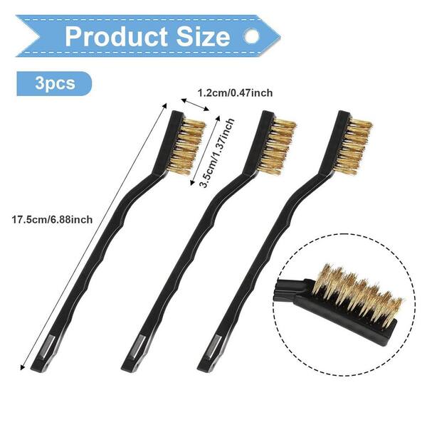 3-Pcs Mini Brass Wire Cleaning Brushes Set Curved Handle Scratch Toothbrush for Welding Slag Rust Removal