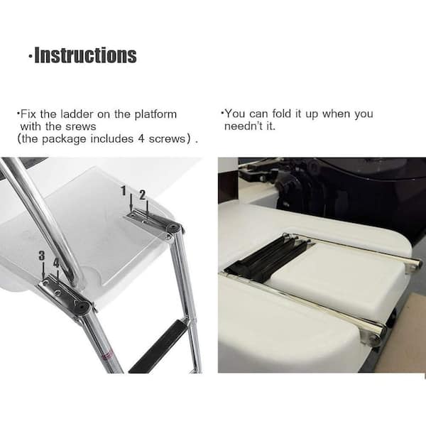 3 Step Telescoping Folding Boat Ladder 304 Stainless Steel Anti-Corrosion Non-Slip Safe Design 600 lbs. Reach 36 in. H