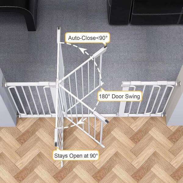 30. 5 H x 29.7-57 W Safety Baby/Dog Gate Pressure Mounted Walk Through Durable Carbon Steel Frame in White Fence Panel