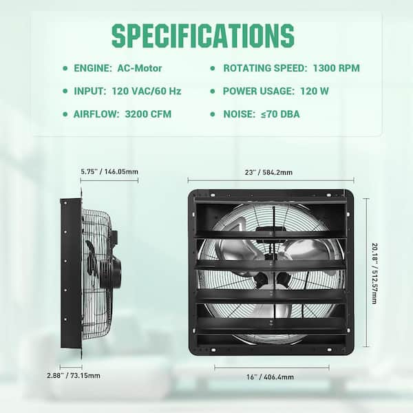 • 3200 CFM airflow with 1300 RPM for effective ventilation