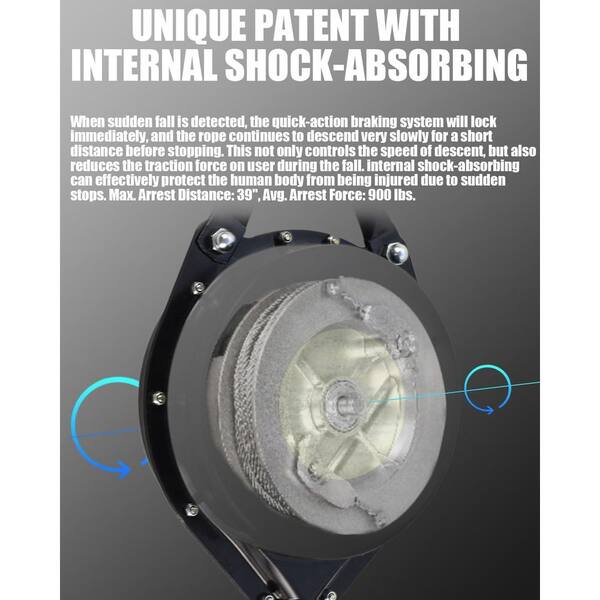 33 ft. Aviation Grade Galvanized Steel Retractable Safety Lanyard Self Retracting Lifeline Shock Absorber ANSI Compliant
