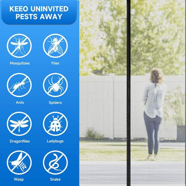 36 in. x 82 in. Black Self-Closing PET Mesh Polyethylene Terephthalate Fiberglass Magnetic Screen Door