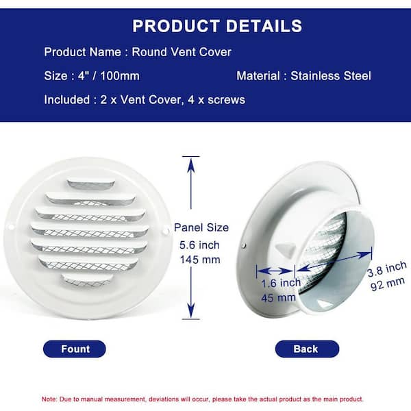 4 in. Round Stainless Steel Air Vent Cover Black Finish Built-in Mesh for Exterior Wall Soffit Vent 2-Piece