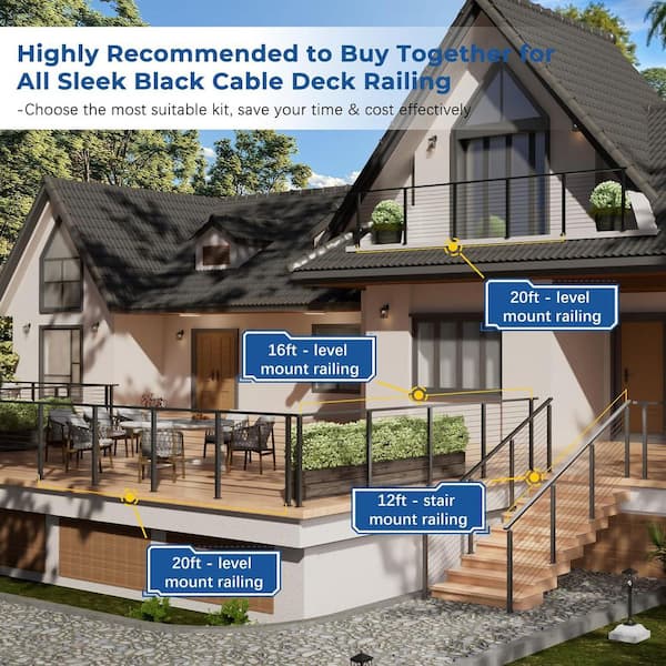 42 in. H x 240 in. W Black T304 Metal Cable Railing Posts Kit, Handrail, DIY, Stair Railing Kit