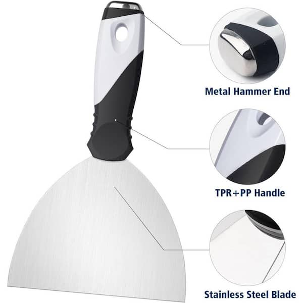 5 Inch Stainless Steel Taping Knife with Hammer End Design for Wood and Paint Scraping, Easy to Hold and Use