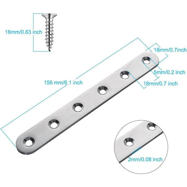 6.1 in. Stainless Steel Flat Straight Brace Brackets, Heavy Duty Joining Plates with Screws for Wood and Cabinet, 4-Pack