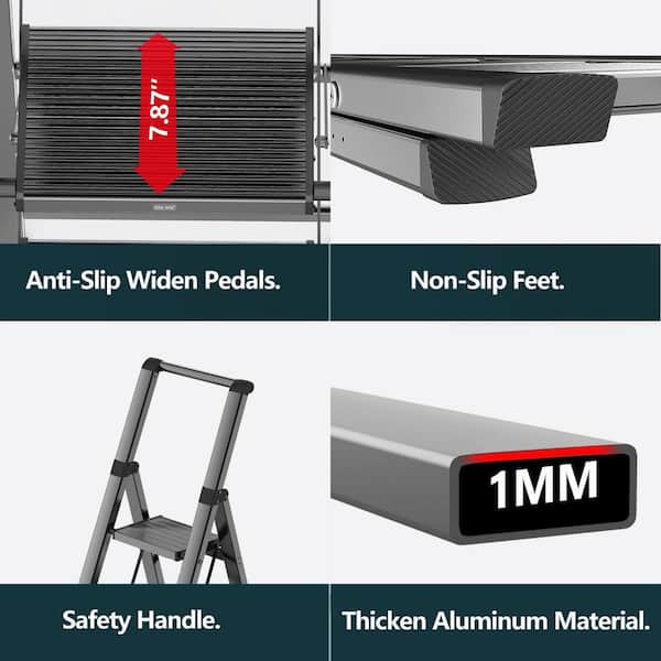 6 Step Foldable Ladder with Non-Slip Wide Pedals and Safe Handrail Reach 12 ft. High Ceiling 300 lbs. Capacity - Black