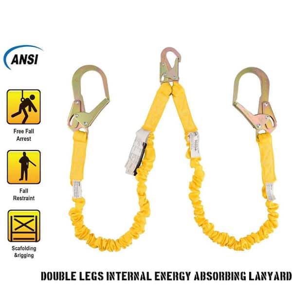 6 ft. Fall Protection Safety Lanyard with Shock Absorbing Stretchable and Snap and Rebar Hook Connectors ANSI Compliant