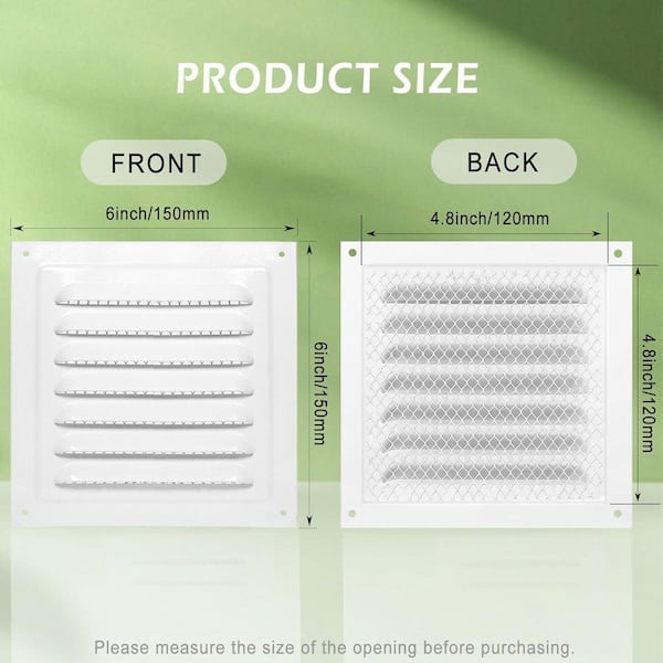 6 x 6 Square White Metal Louvered Grille Cover with Built-in Fine Mesh for Attic Garage RV Ventilation 2-Pack