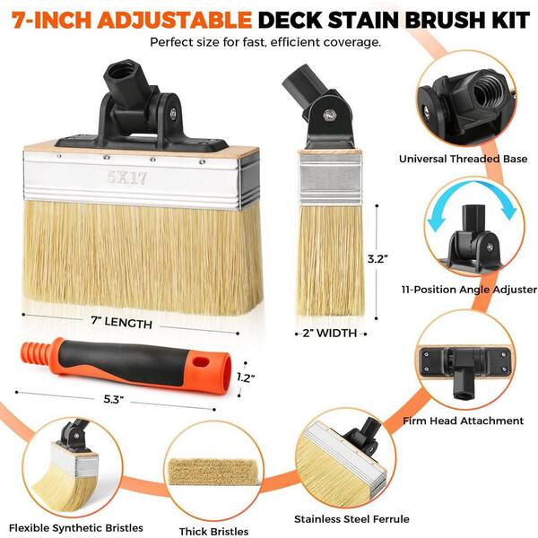 7 in. Adjustable Stain Applicator Wide Deck Paint Brush Limewash Brush for Wood Fence Masonry Walls